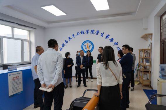 辅导报告会后,学院领导班子全体成员、党支部书记、学科带头人、学科团队负责人、系室主任到水利与土木工程学院开展座谈并进行参观。