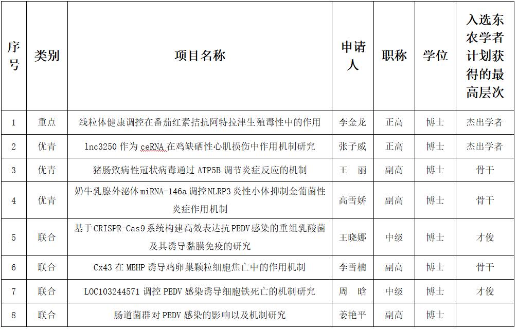 随着学院近年来对青年骨干教师培养力度的加大,团队培养体系建立,青年学者学术交流活动活跃,成效显著,立项教师入选东农学者计划7人,此次获得者中40岁以下7人,占比87.5%,另获悉公司国自然青年项目的中标率达40%,位于学校首位。省基金项目的获得对一流学科的科研和团队队伍建设起到积极的推动作用,也为公司培养高水平青年骨干人才奠定了基础。