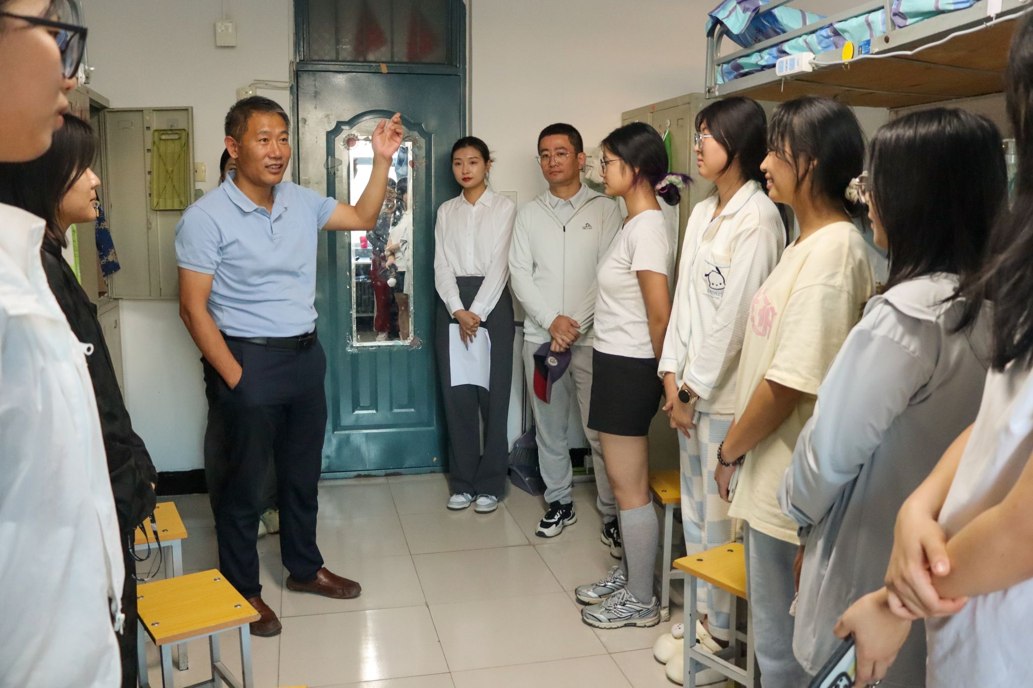 为了解新生报到后的生活及适应情况,帮助新生尽快转变角色,学院领导及辅导员代表于8月30日下午共同走访新生寝室,传递关怀与问候。学院老师们亲切地与每位新生进行了交流,热烈欢迎他们的到来,询问了新生的生源地、高考成绩、所学专业以及未来规划等,并对独立到校报到的新生予以肯定,希望同学们在大学学会独立生活,以饱满的热情和昂扬的风貌开启老员工活。